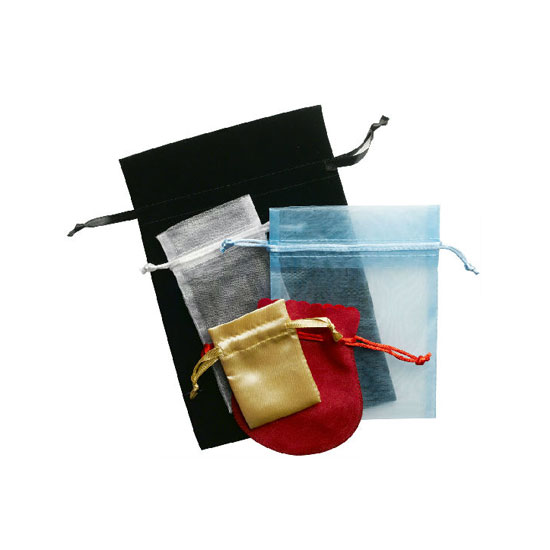 This is a collection of fabric pouches that comes in assorted sizes. With a pull string, these pouches are easy to use. These beautiful pouches are great for gift packaging.