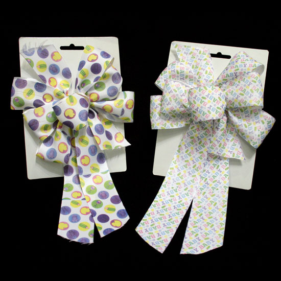 This special ribbon adornment flaunts a cute print-pattern on a white fabric. Made with soft material, this ribbon flower comes in handy in decorating gift baskets and party venues. Featuring a clean, lovely design, this ribbon flower is a refreshing choice for any decoration purposes.