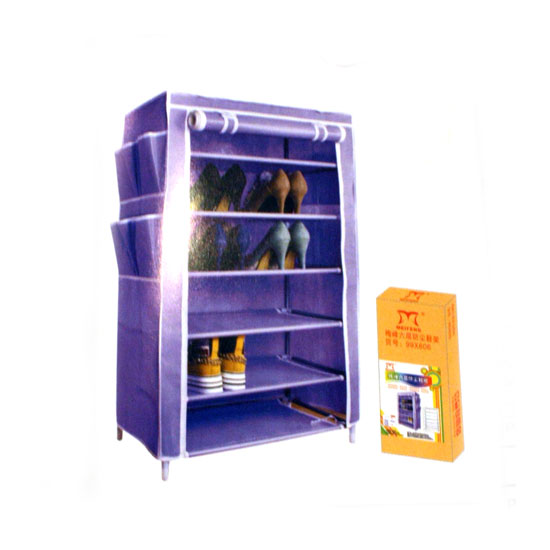 This fabric wardrobe is covered in non-woven fabric. It is designed with a six-tier shelf for convenient storage. It helps you organize your clothes and shoes neatly.