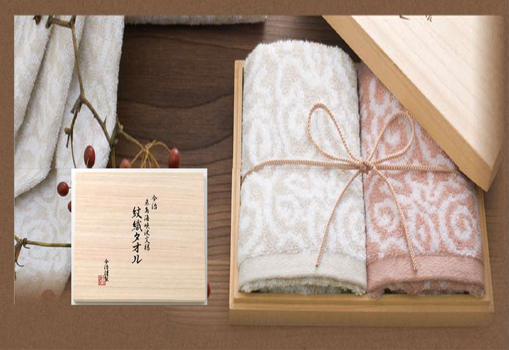 An elegant housewarming gift idea, this towel set is packed with a wooden box with Japanese calligraphy print. Two towel rolls are arranged neatly in the box with a calligraphy note covered and a bow knit wrapped for enhanced delicacy. The towels are made of pure cotton, looking as soft as the feel with a thick yet comfortable hand with soothingly curling patterns.