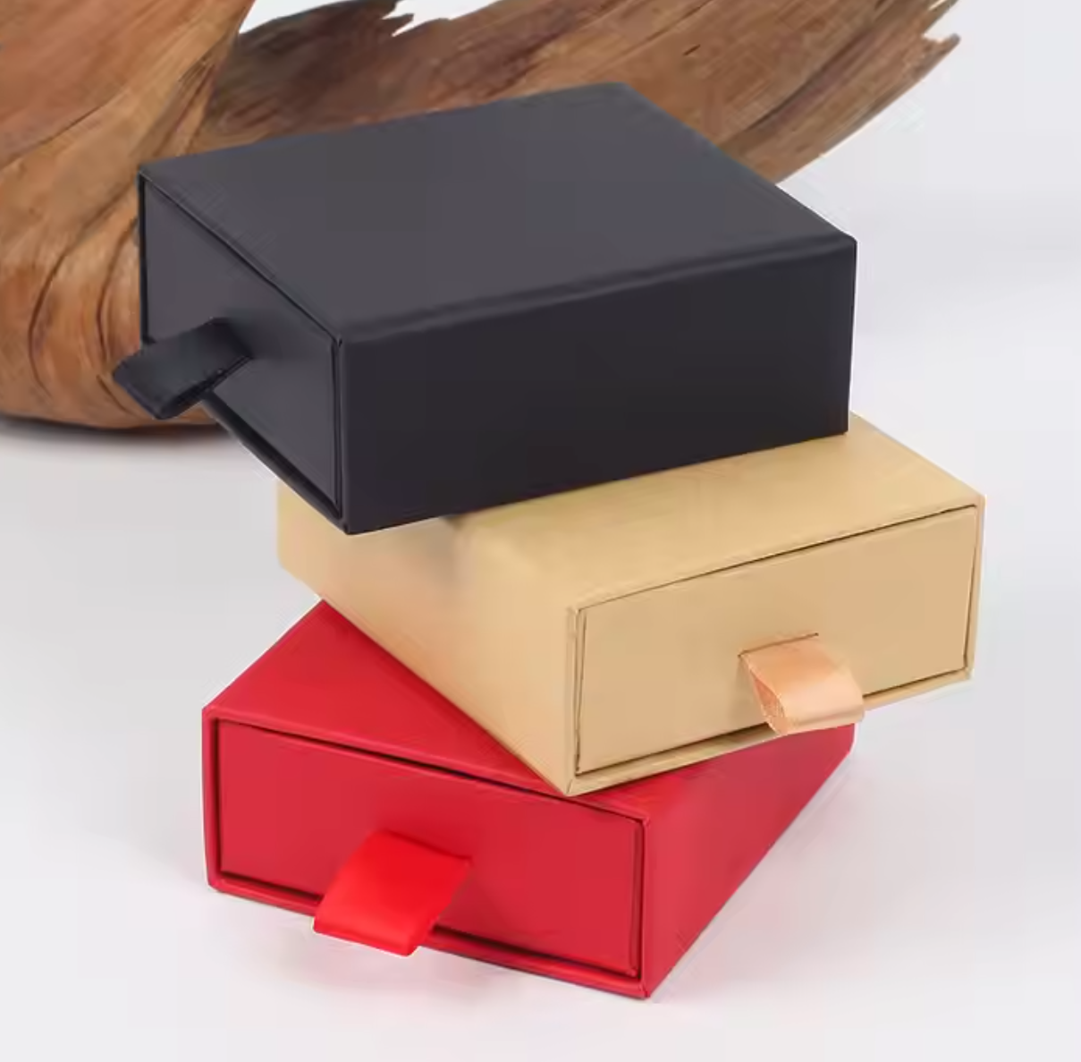 Factory Wholesale Black Kraft Paper Jewelry Set Box Custom Logo Printed Drawer for Earrings Ring Packaging Free Available