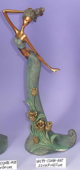 Polyresin green faerie figure with flower pattern.