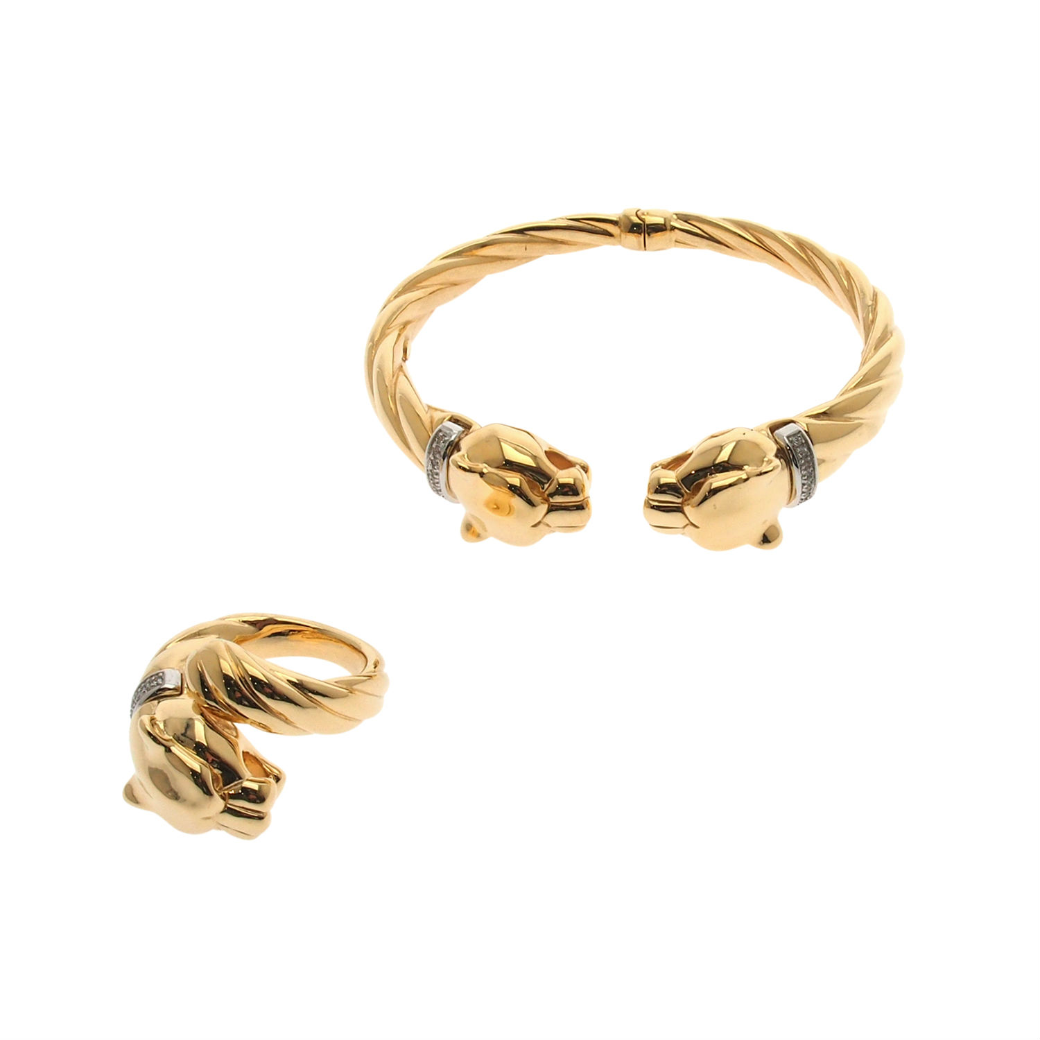 They are women bangle and ring, made of Gold 18K, and the clarity is electroforming super lightweight.