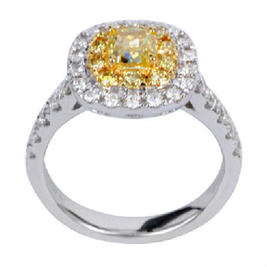 Cushion shape yellow diamond ring with centre diamond approx. 0.73ct (SI clarity)