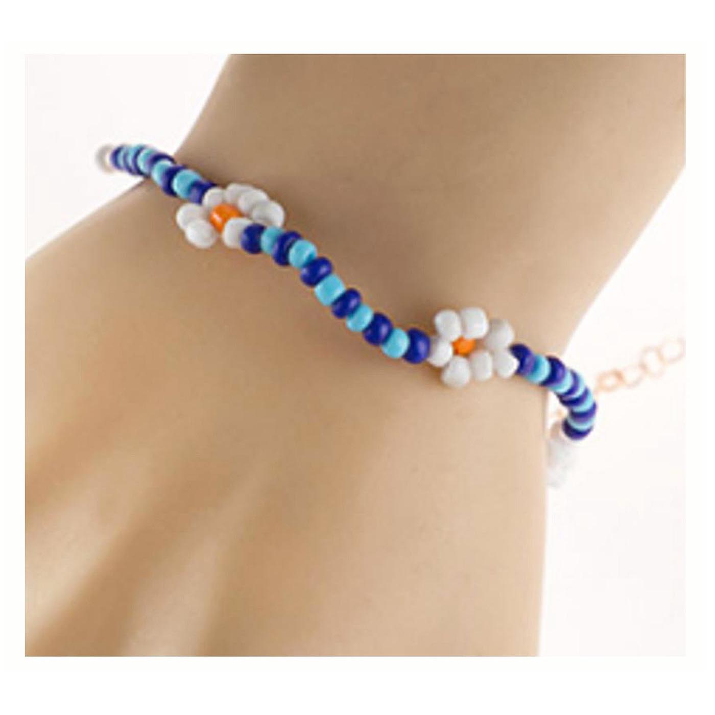 As shown is an elegant trendy flower style colorful plastic beads bracelet. This is a bracelet highlighted golden plated with plastic beads.