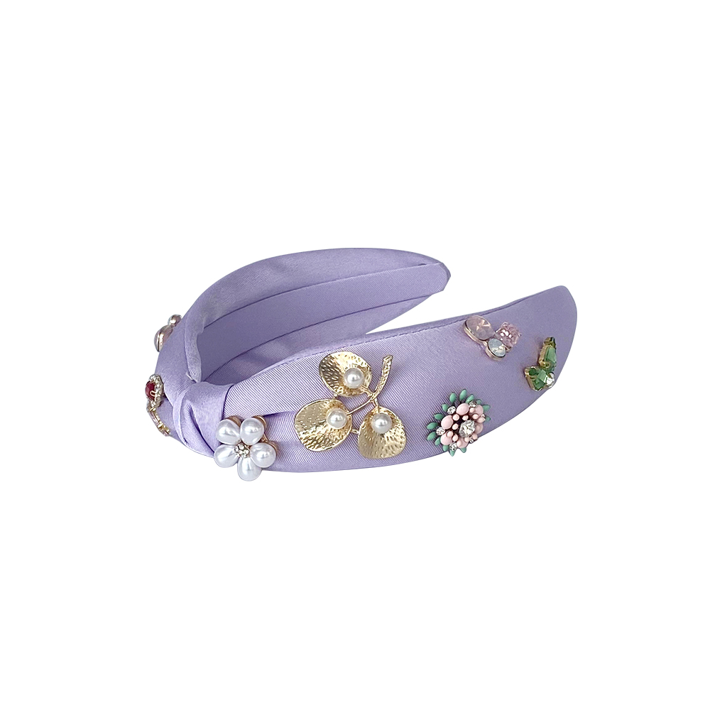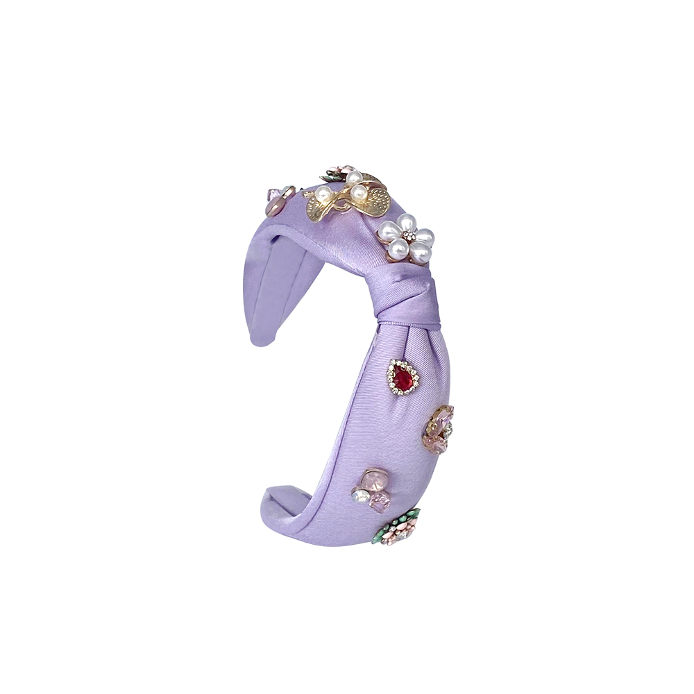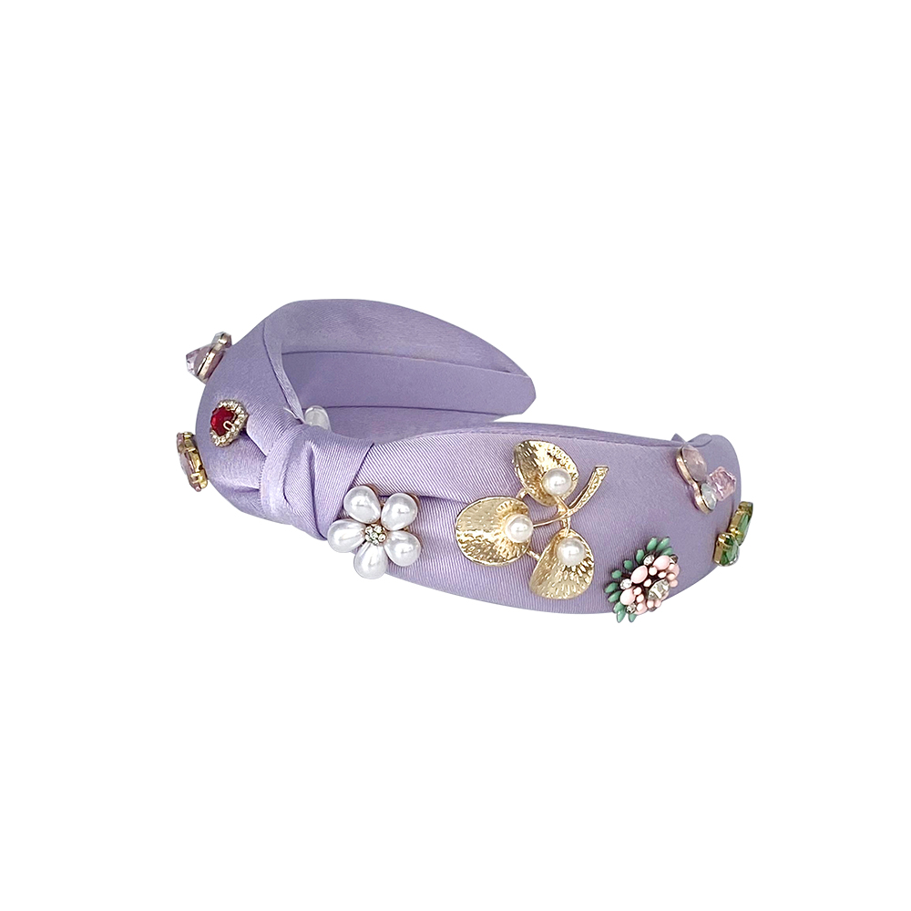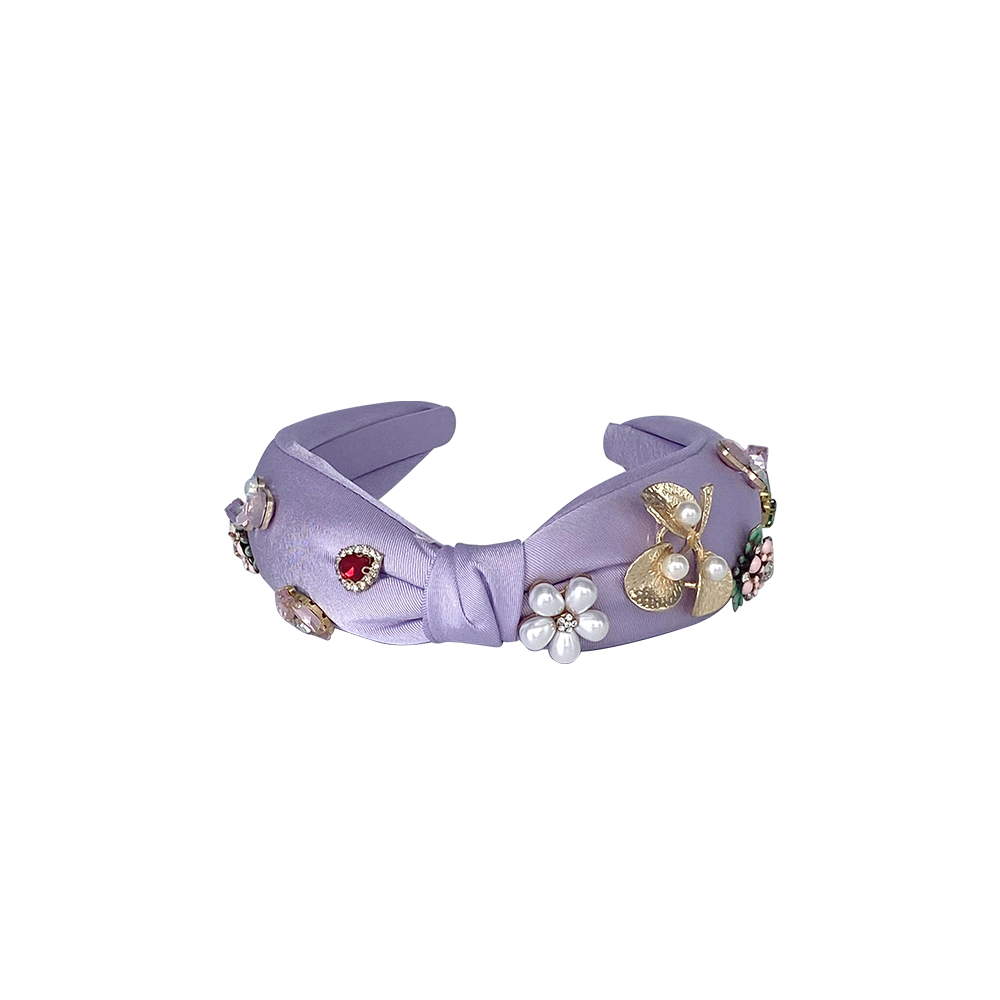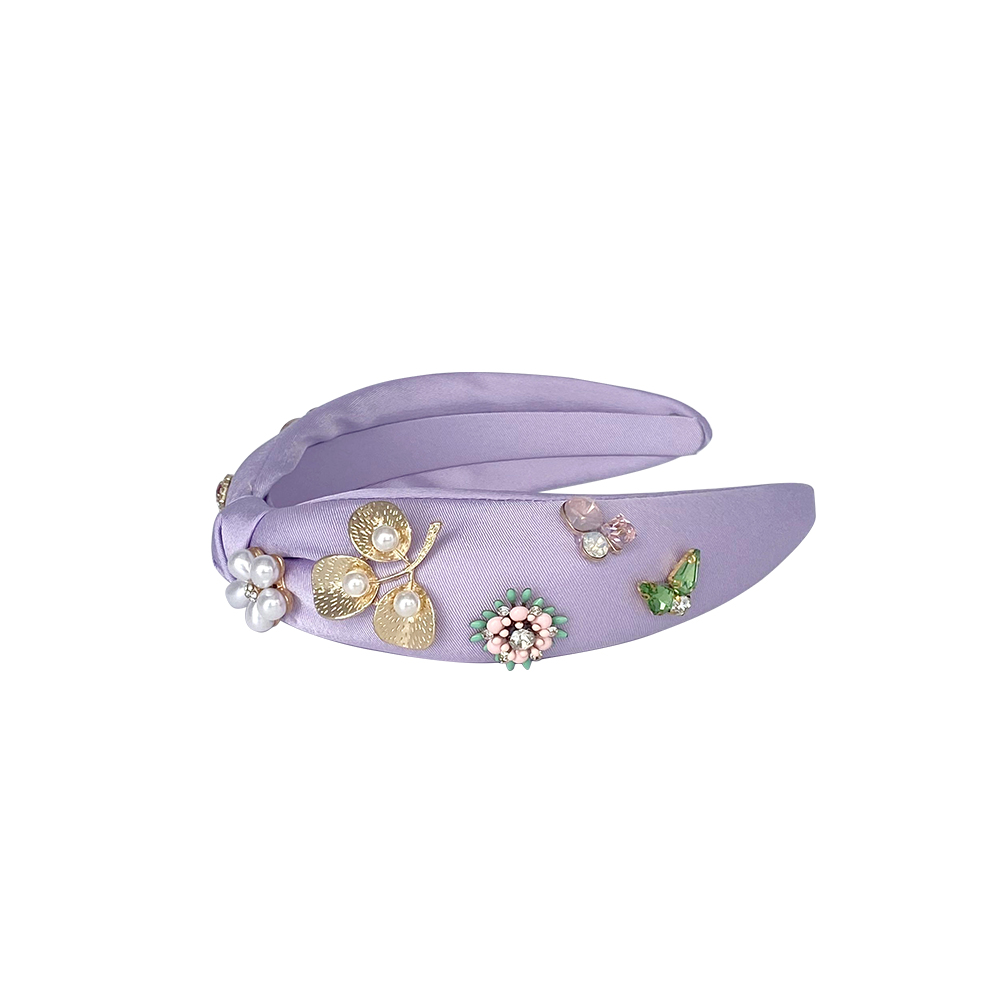 Fashion Girl Headband Polyester Fabric With Pearl Purple Hairband Women's Middle Knot Turban Hair Accessories