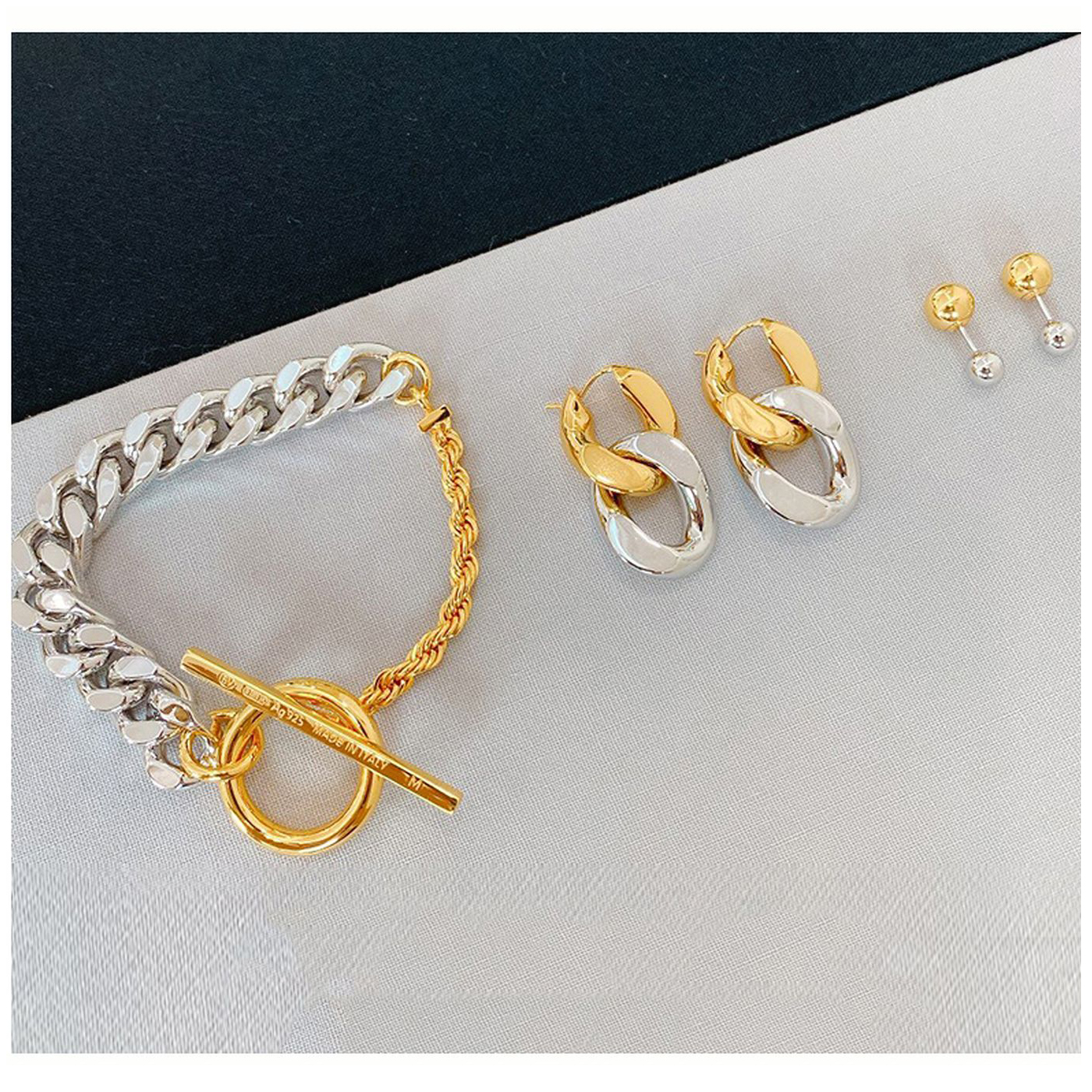 As shown is an elegant trendy gold mix silver plated bracelet and earring set.