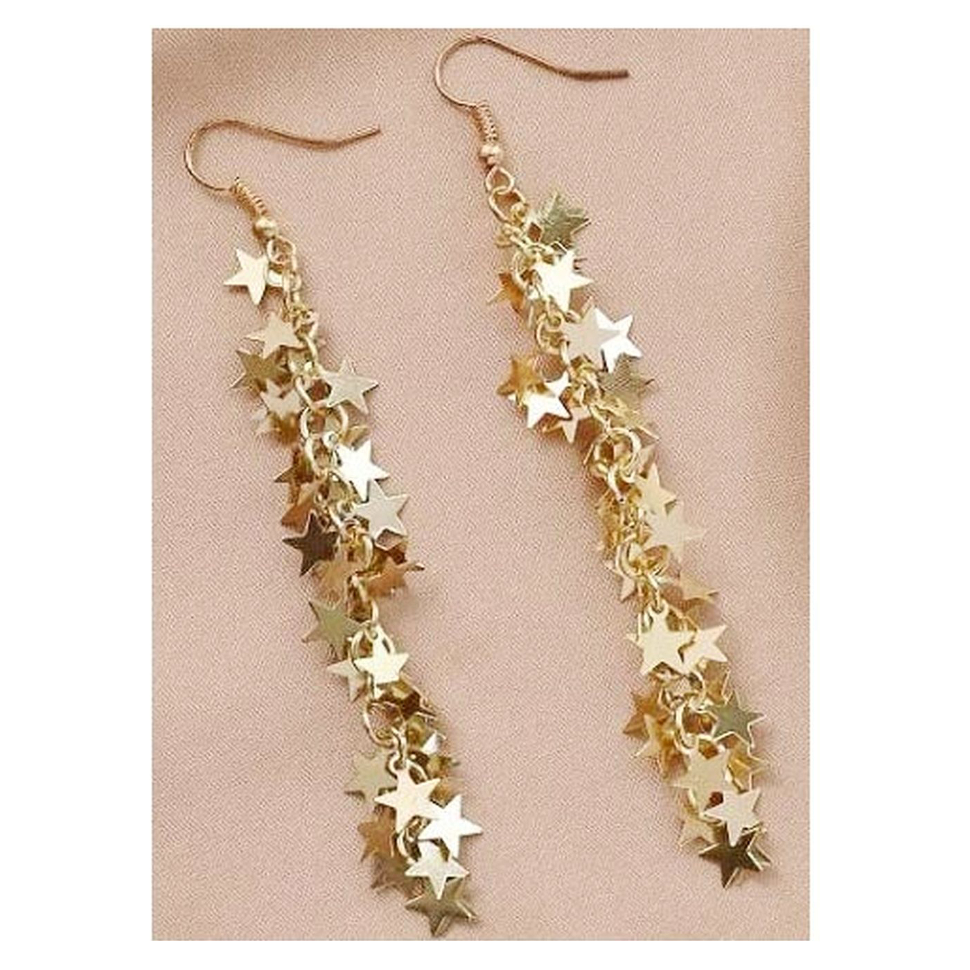 As shown is a high-fashion golden plated star parts and charm drop earring.