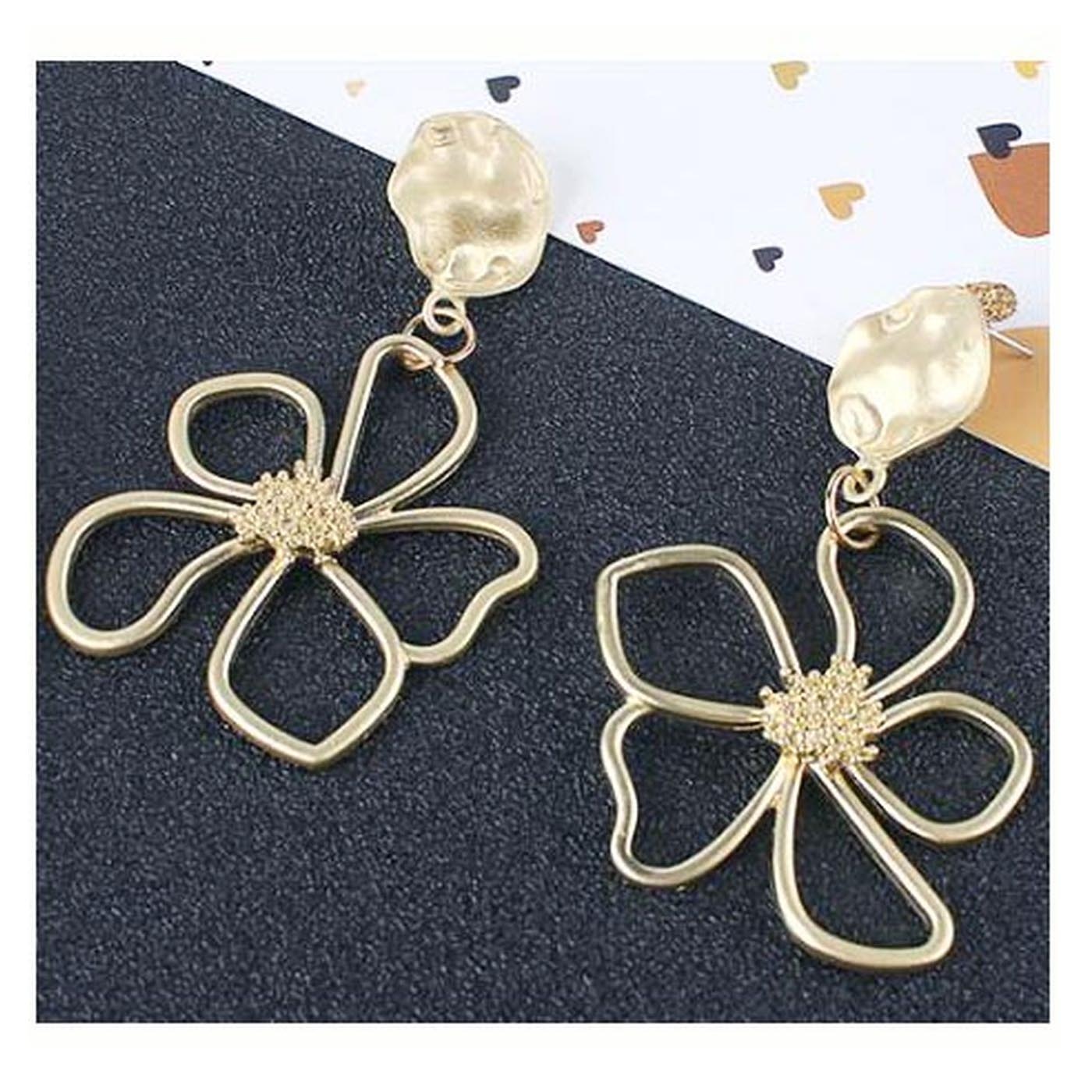 Fashion Golden Plated Flower Style Alloy Parts Drop Earring