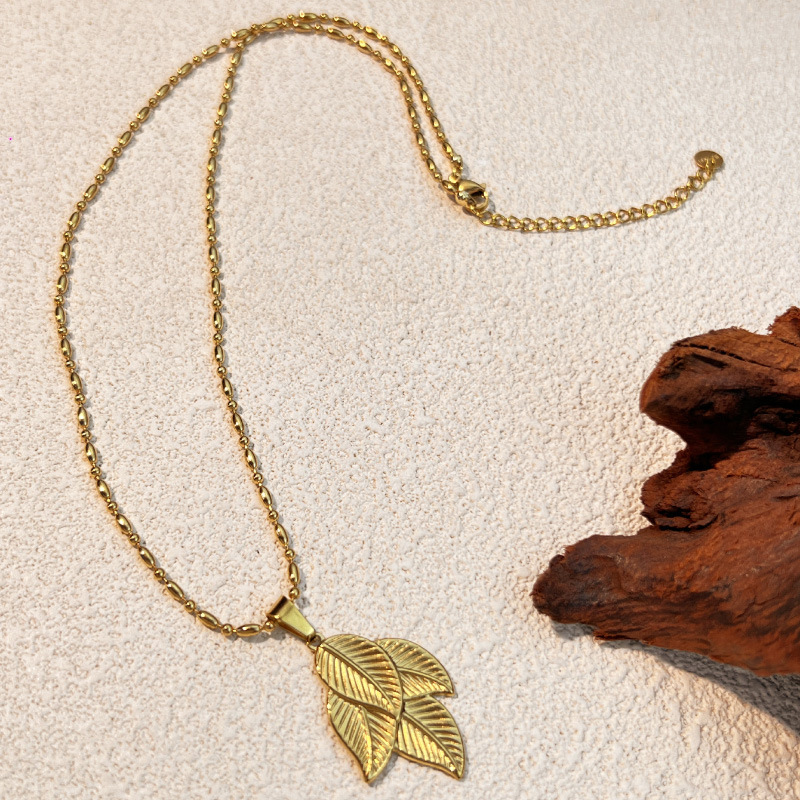 Fashion Jewelry Stainless Steel Necklace with Leaf Pendant