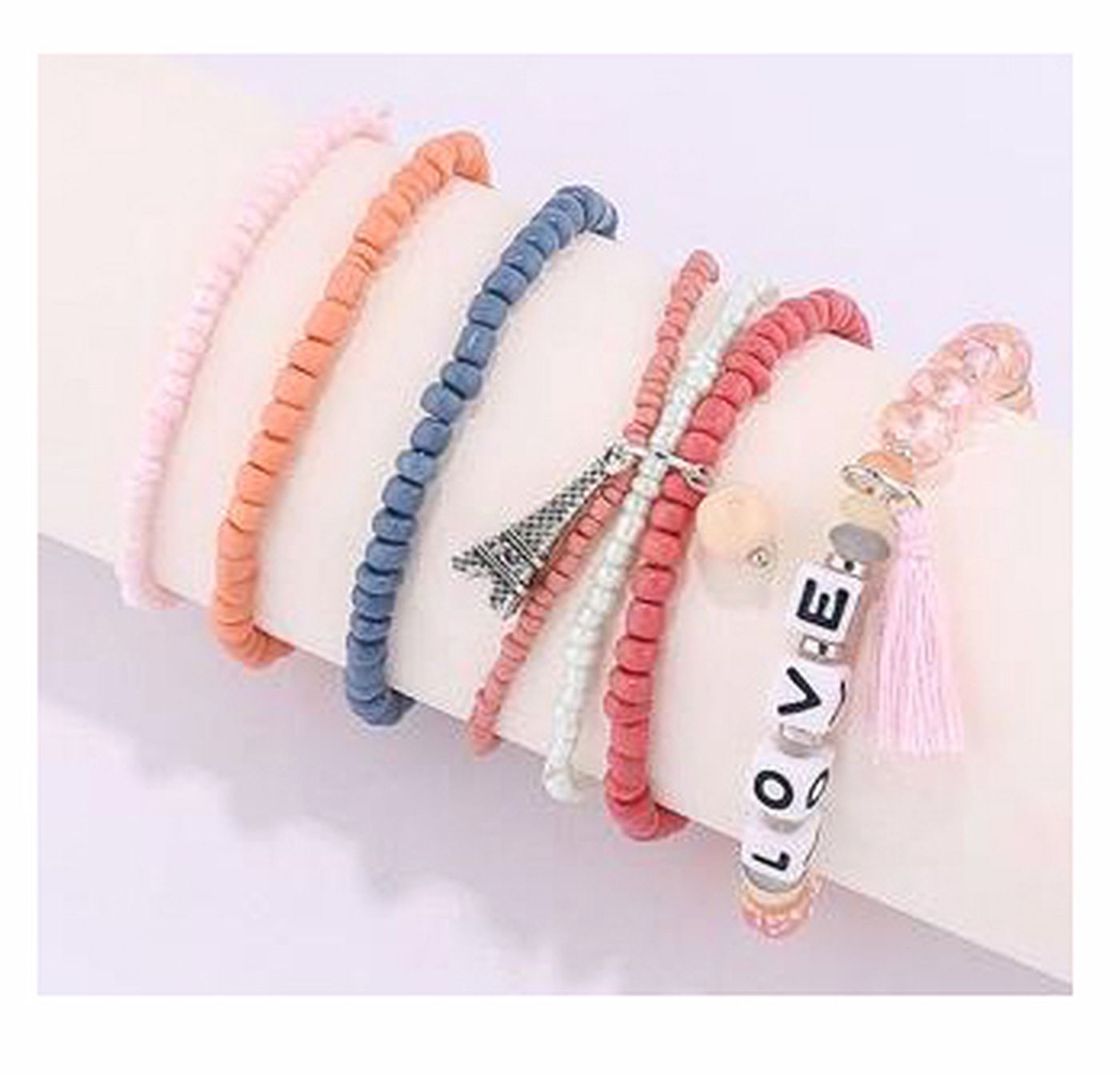 As shown is an elegant trendy mixed style colorful plastic beads bracelet.