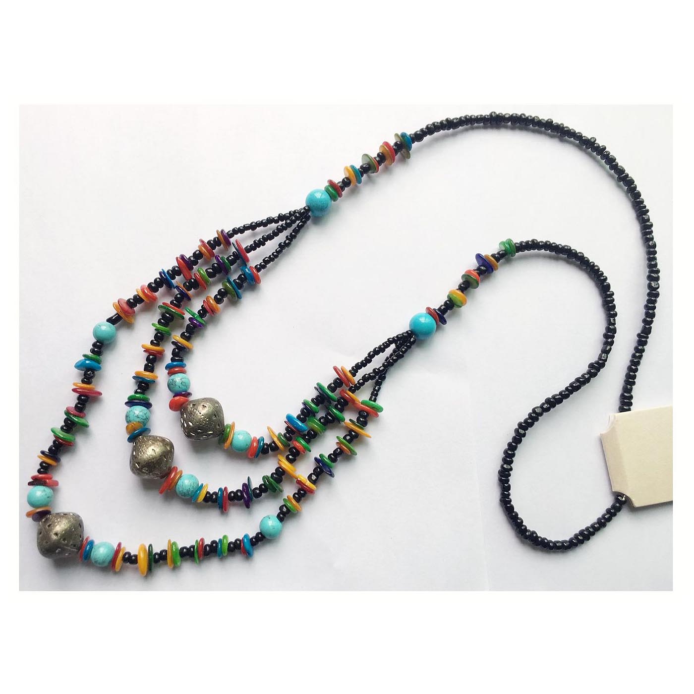 As shown is an elegant trendy necklace with multiple strands each highlighted by plastic beads accessories.