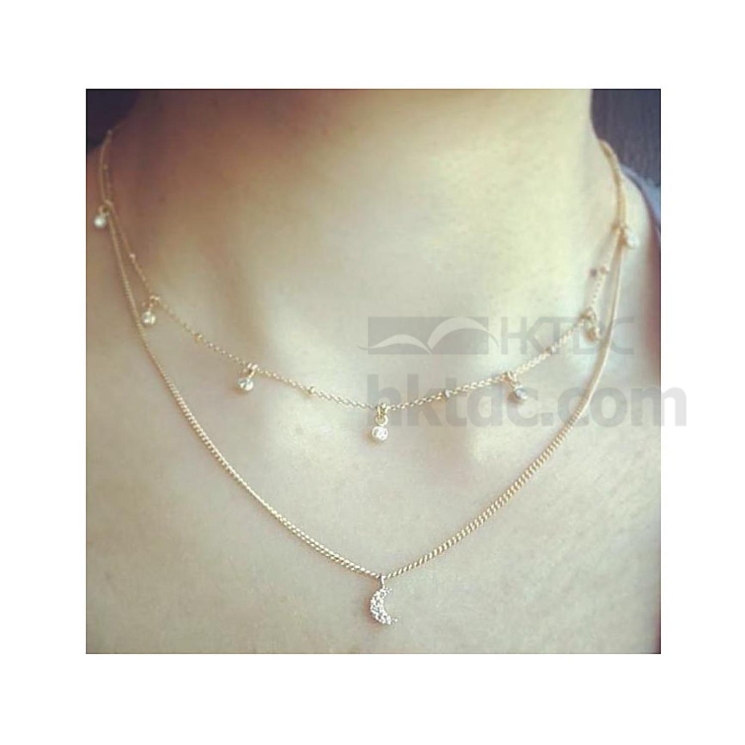 As shown is an elegant trendy crystals necklace with multiple strands each highlighted by metallic accessories.