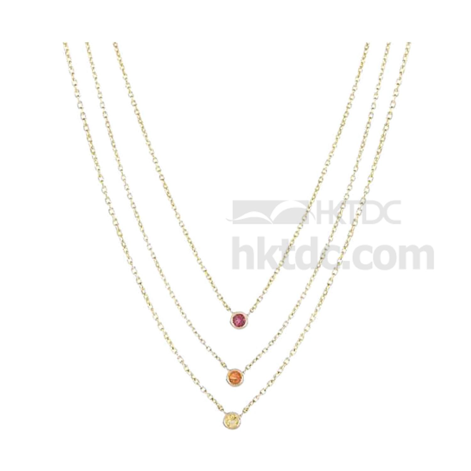 As shown is an elegant trendy crystals necklace with multiple strands each highlighted by metallic accessories.