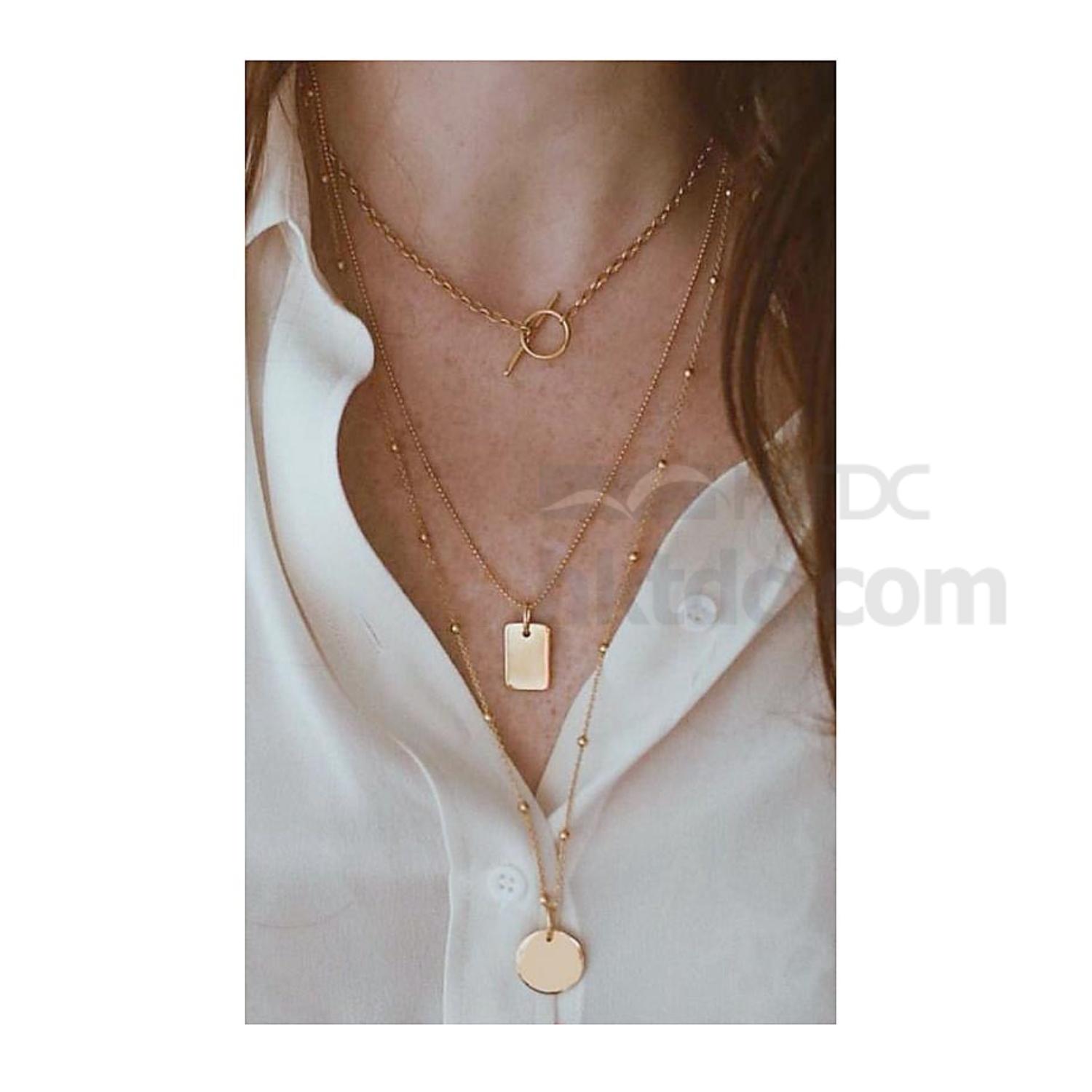 As shown is an elegant trendy necklace with multiple strands each highlighted by metallic accessories.