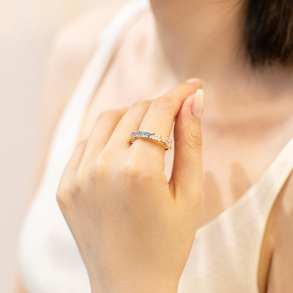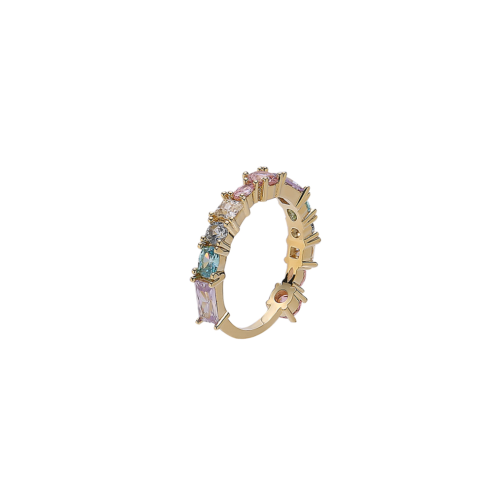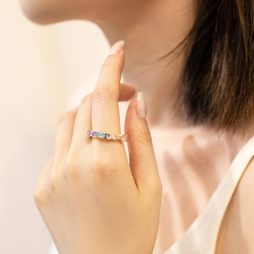 Fashion Multicolor Rainbow Cubic Zirconia Irregular Eternity Rings Wedding Rings Jewelry Rings for Women