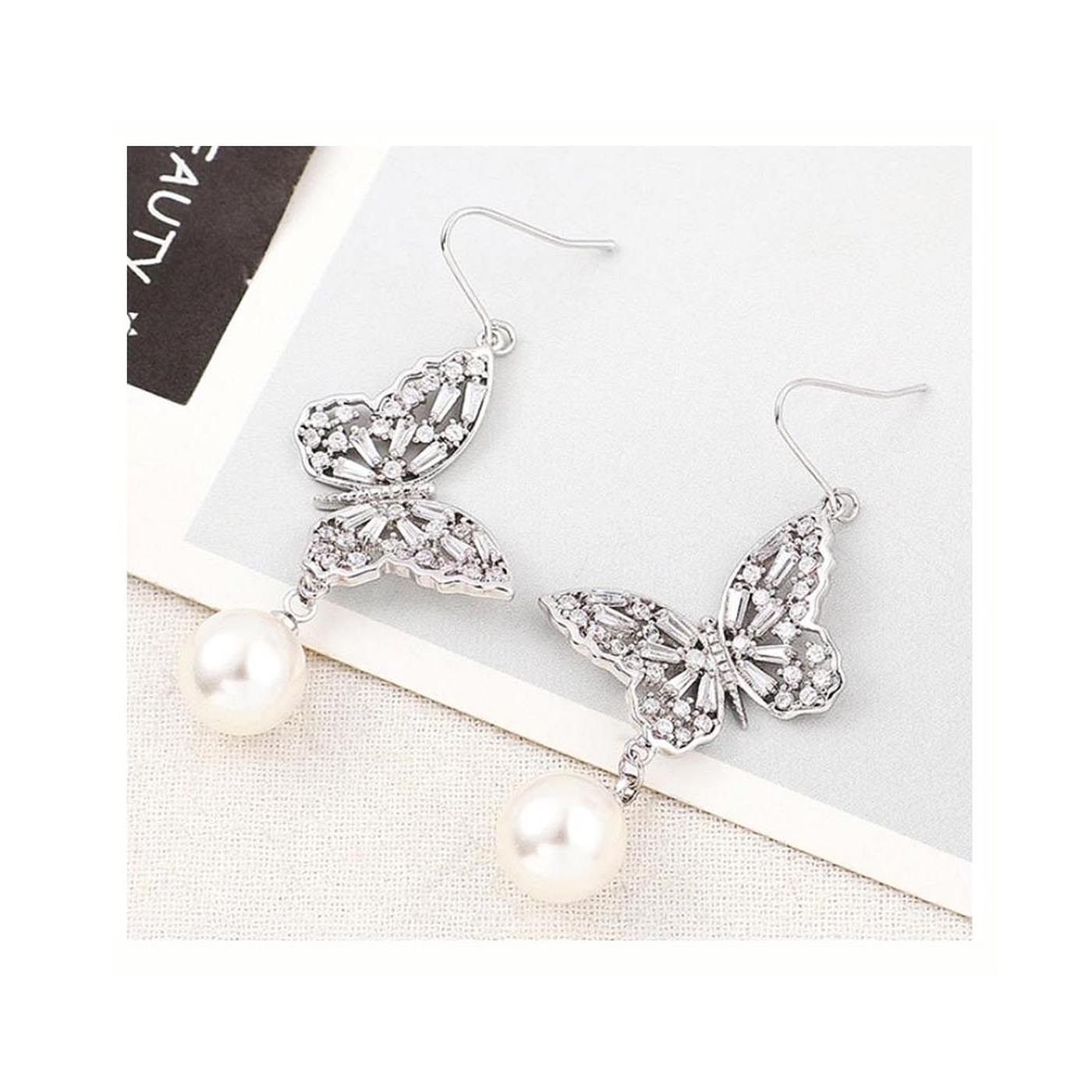 Fashion Pearl Beads Charm Crystals Butterfly Drop Earring