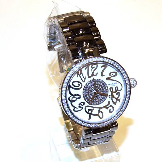 This is a fashion watch which is made with brown coloured ceramic watch band, stainless steel casing and decorated with sparkling crystals.