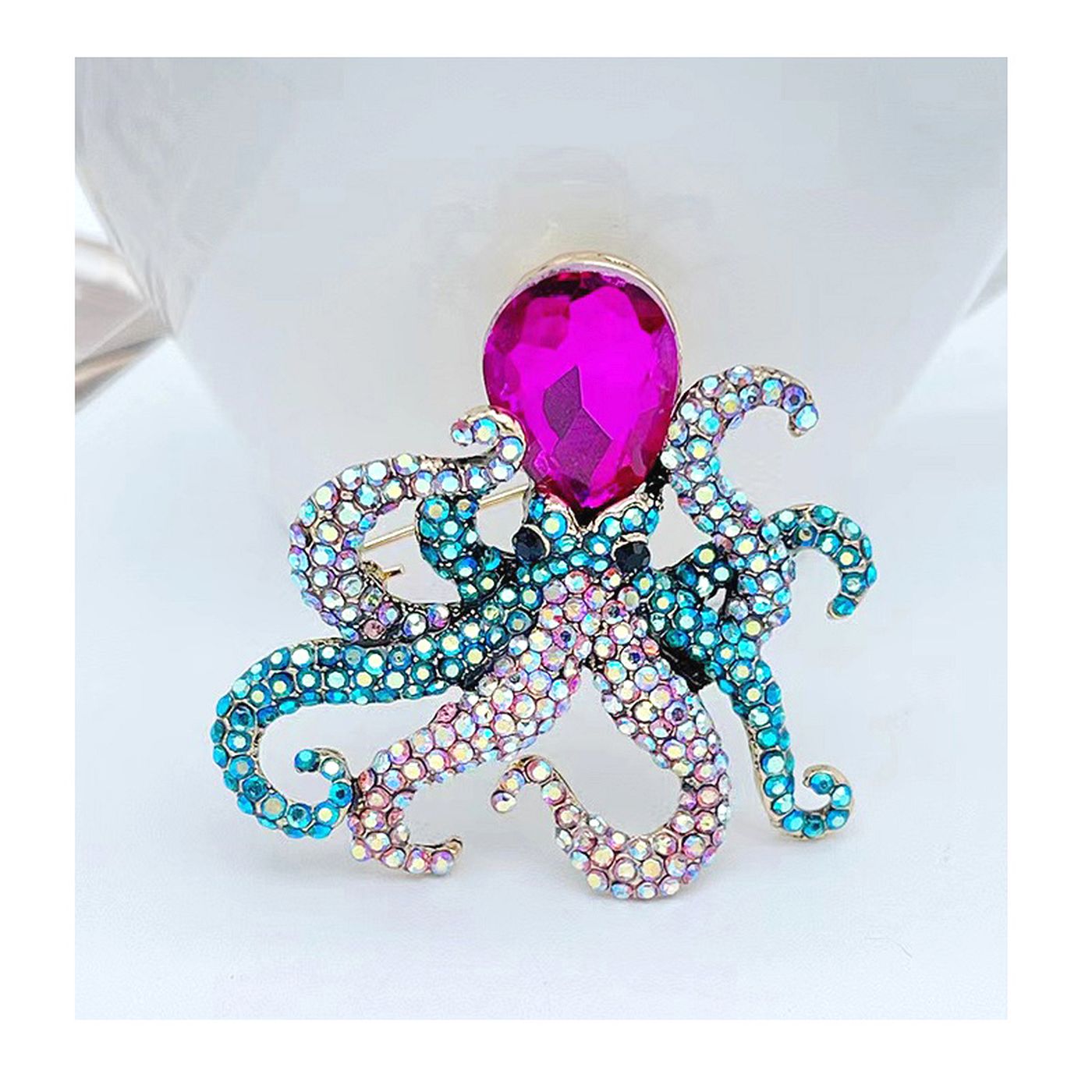 As shown is a high-fashion octopus style crystal silver plated alloy parts brooch.