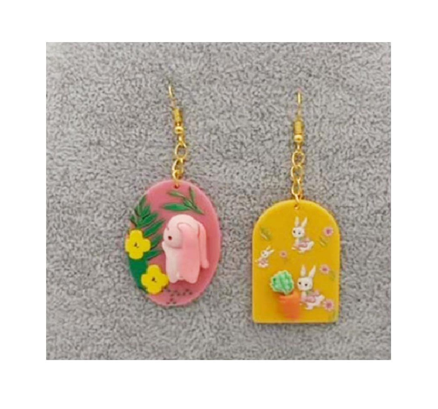 As shown is a high-fashion rabbit style alloy parts and charm drop earring.