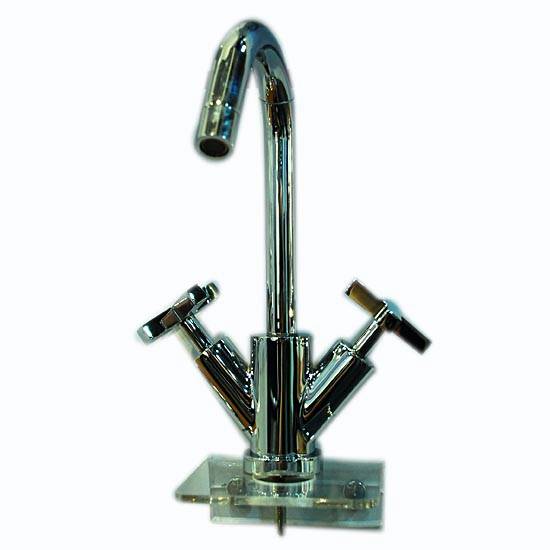 The bathroom faucet features polished chrome finish with an elegant touch. It comes with two taps for hot and cold water flows. Update your bathroom fixture with this single-hole bathroom faucet.