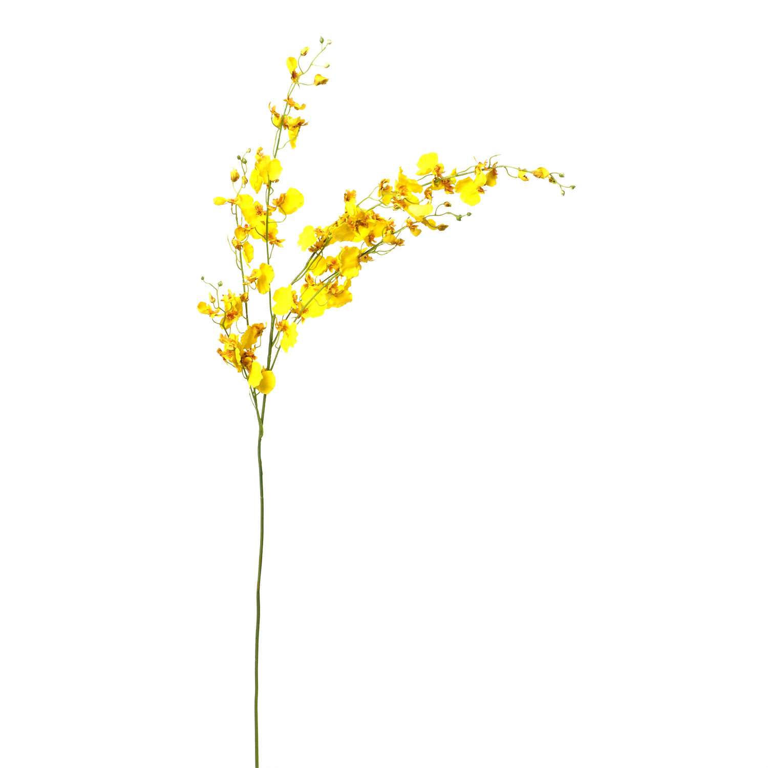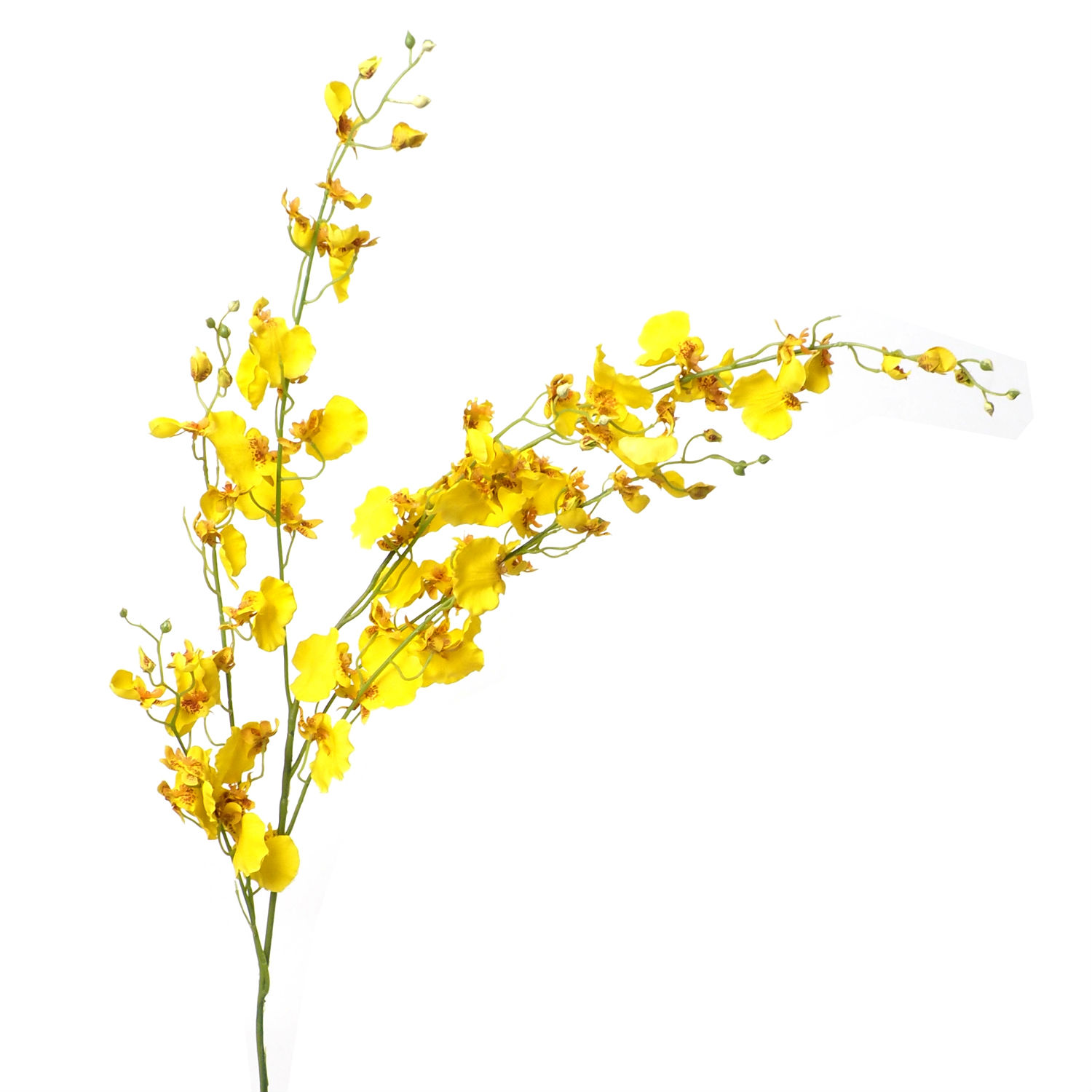 A delightful addition to summer-themed floral arrangements, this flower spray highlights a vibrant look in yellow shades. A cluster of flowers are attached along the slim twigs, allowing gentle swaging in the summer breeze. This strikingly beautiful artificial spray will bring warmth and cheer to any space.