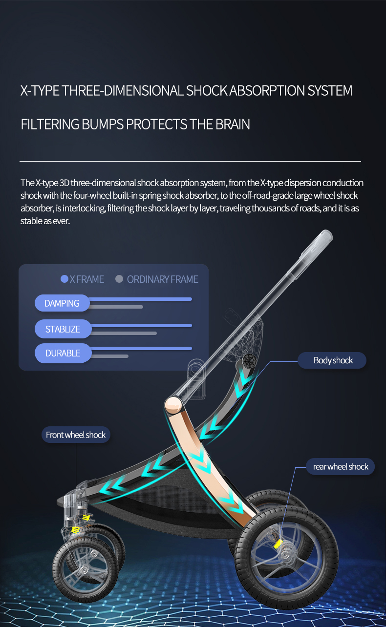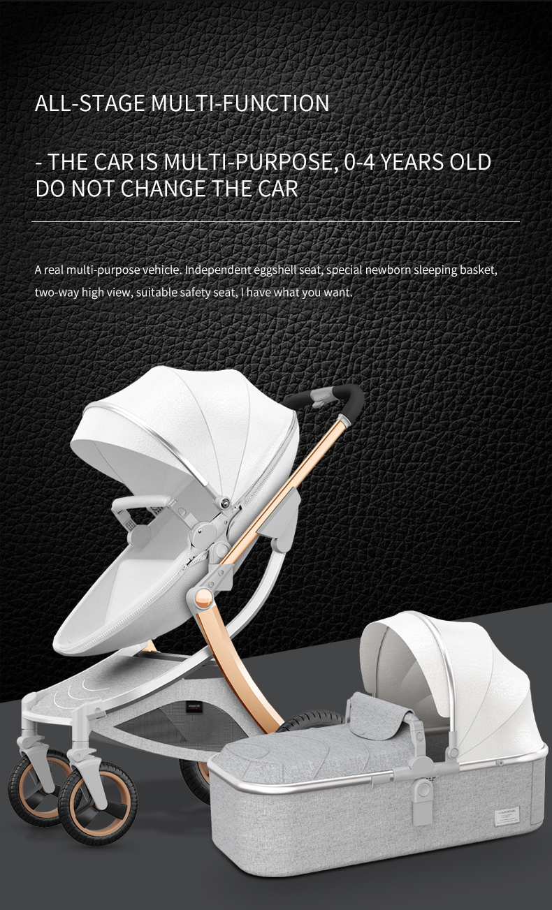 Favorable baby stroller 3 in 1 eggshell baby trolley with aluminum frame and PU leather