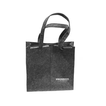 This gray toned felt bag features white letters on the top rim and the bottom. The sophisticated stitches guarantee extra robustness. This compact felt bag is suitable for carrying your daily items such as books and files.