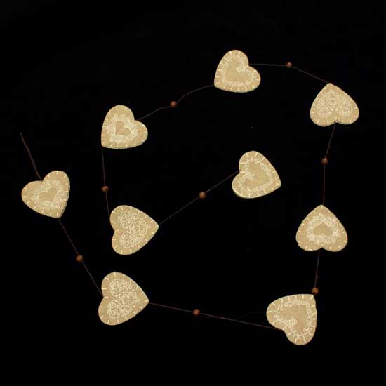 This string of heart-shaped ornaments can be used on any place in your home. The adorable ornaments are adorned with white stitched detail. It certainly appeals to your female customers.