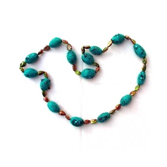 This felt necklace comes with oval-shaped sequence balls to catch people’s attention instantly. The colorful appearance is youthful and lively. This necklace is an excellent choice for casual occasions.