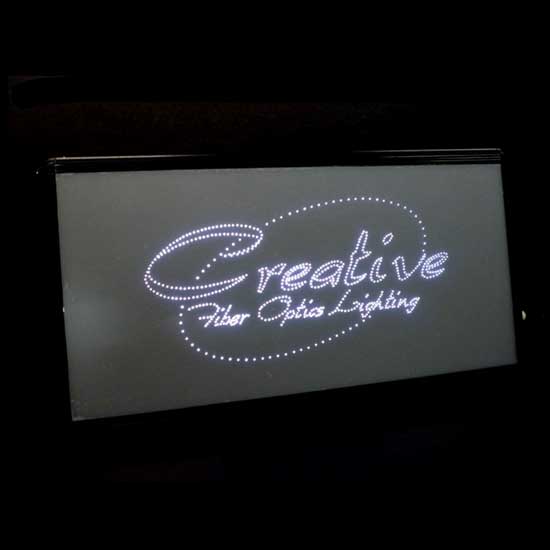 As shown is a fiber optic signboard completed with a rectangular shape. Any signs on the board are displayed with brilliant LED lights. This piece can also operate with reduced power consumption.