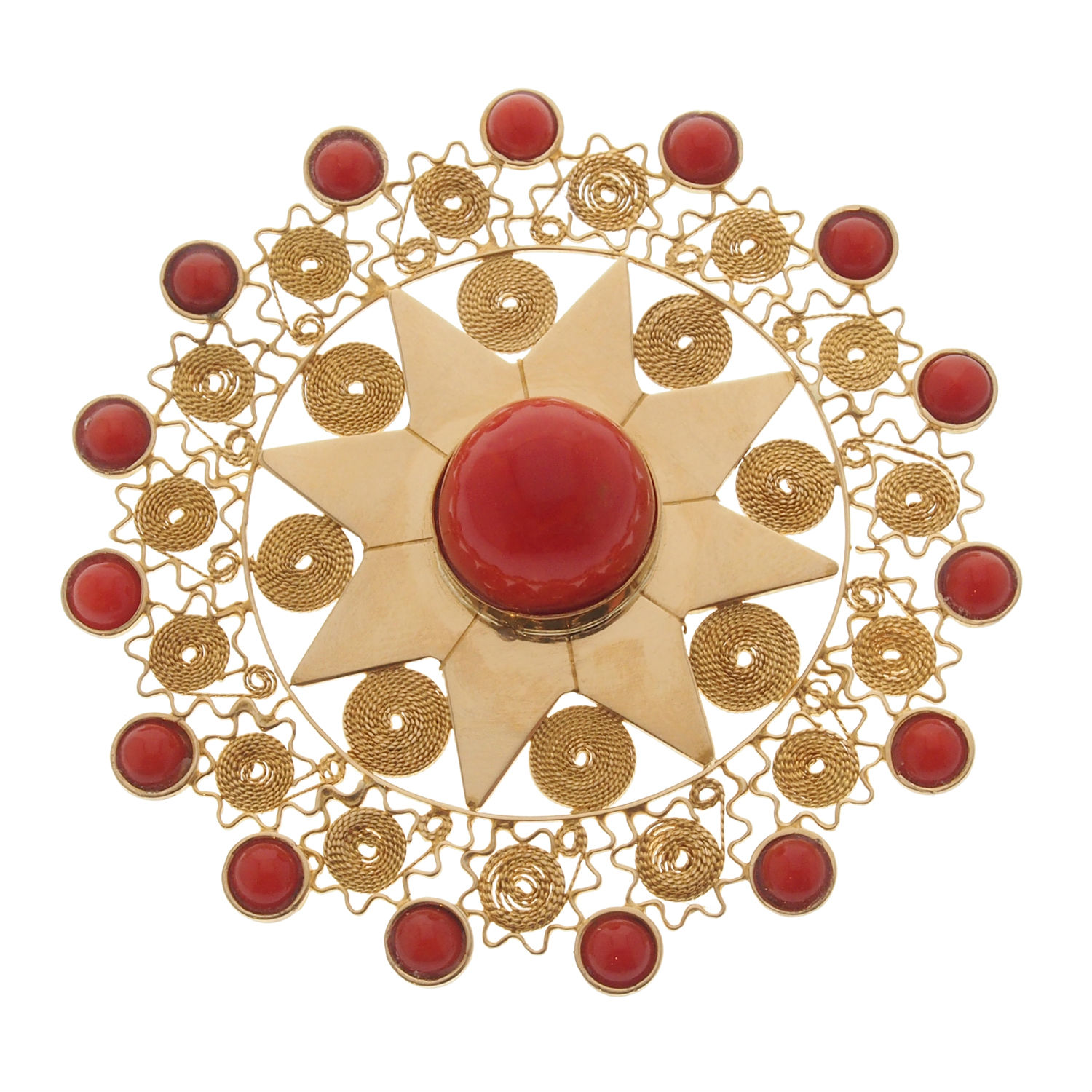 This is 18k gold with Sardinian coral, which is made filigree technique