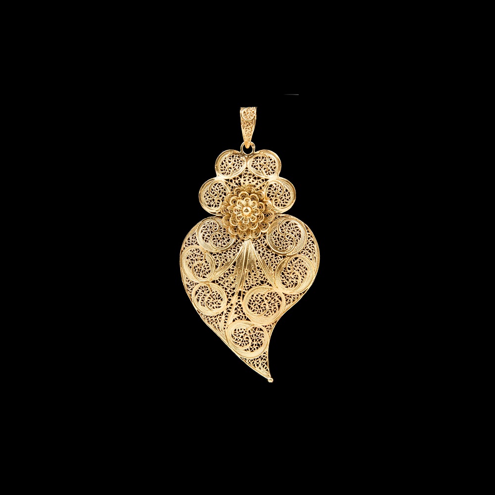 Pendant "Viana Heart", a traditional Portuguese Jewel, in Filigree and silver gold plated with 6 cm higher.