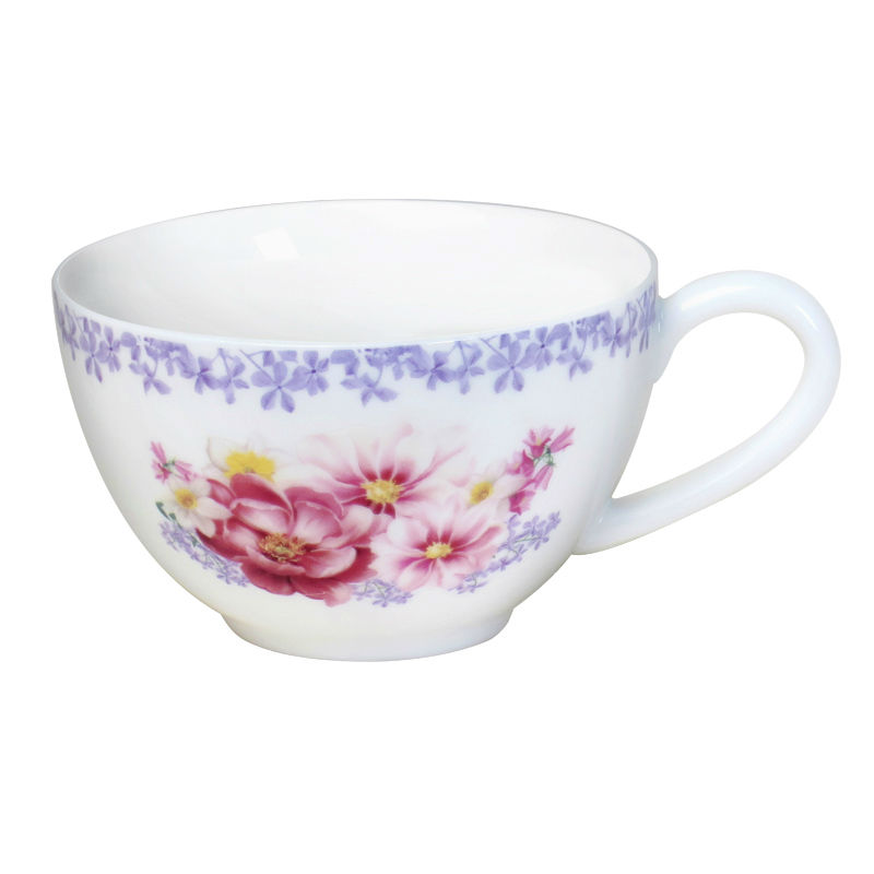 Indulge in your morning brew with this teacup. The curved silhouette pairs a smooth ear for easy holding, finishing on a sophisticated of floral flair. Its fine bone China craft further promises durability and quality for everyday use.