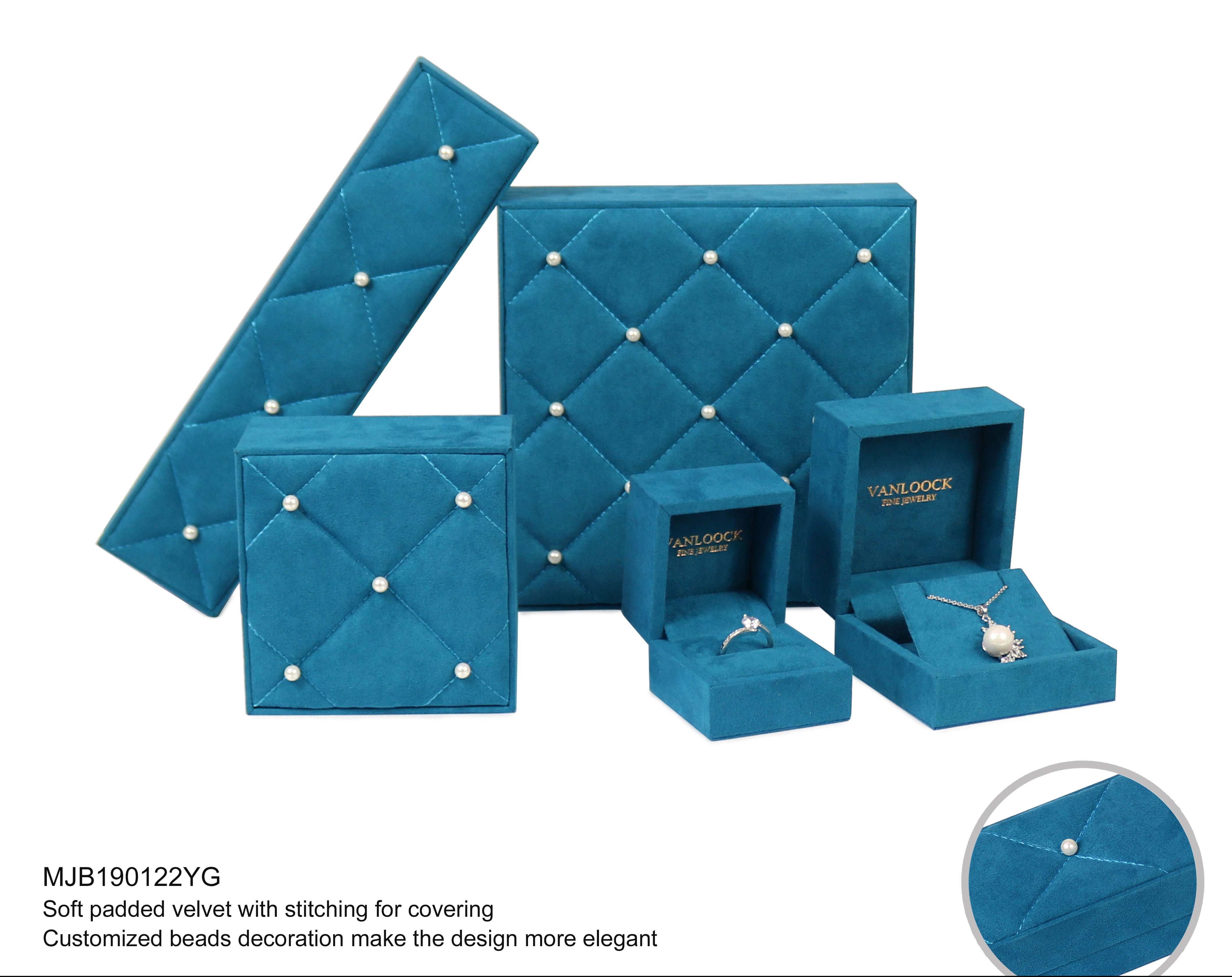 1) Ring box: 59 x 61 x 30/20mm, 2) pendant box: 82 x 84 x 30/20mm, 3) earring and bangle box: 105 x 107 x 30/20mm, 4) set box: 180 x 182 x 30/20mm, 5) bracelet box: 254 x 60 x 20/15mm