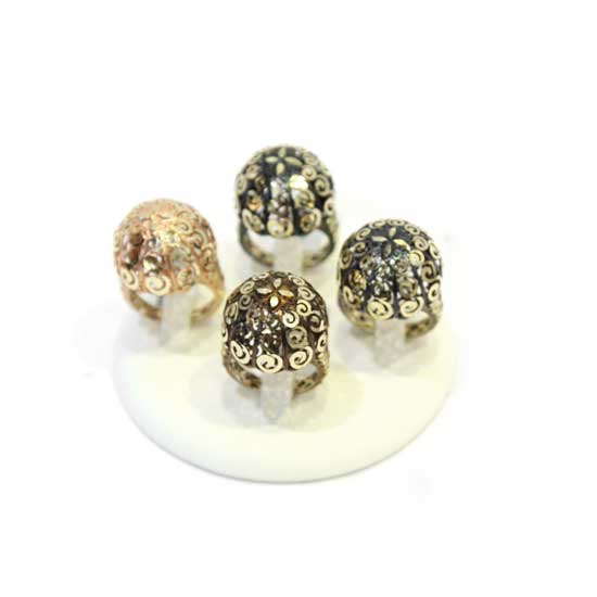 These four finger rings feature a ball-shaped design with delicate patterns. The rings are finely made of 18K gold with exquisite details. The attractive rings are perfect to accentuate your daily look.