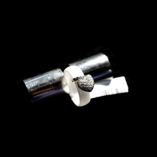 This finger ring stands out from the rest with its unique and trendy design. It features a circle ceramic ring decorated with a heart-shaped silver charm for added style. This ring surely is a great item for adding some glamor to your slender finger.