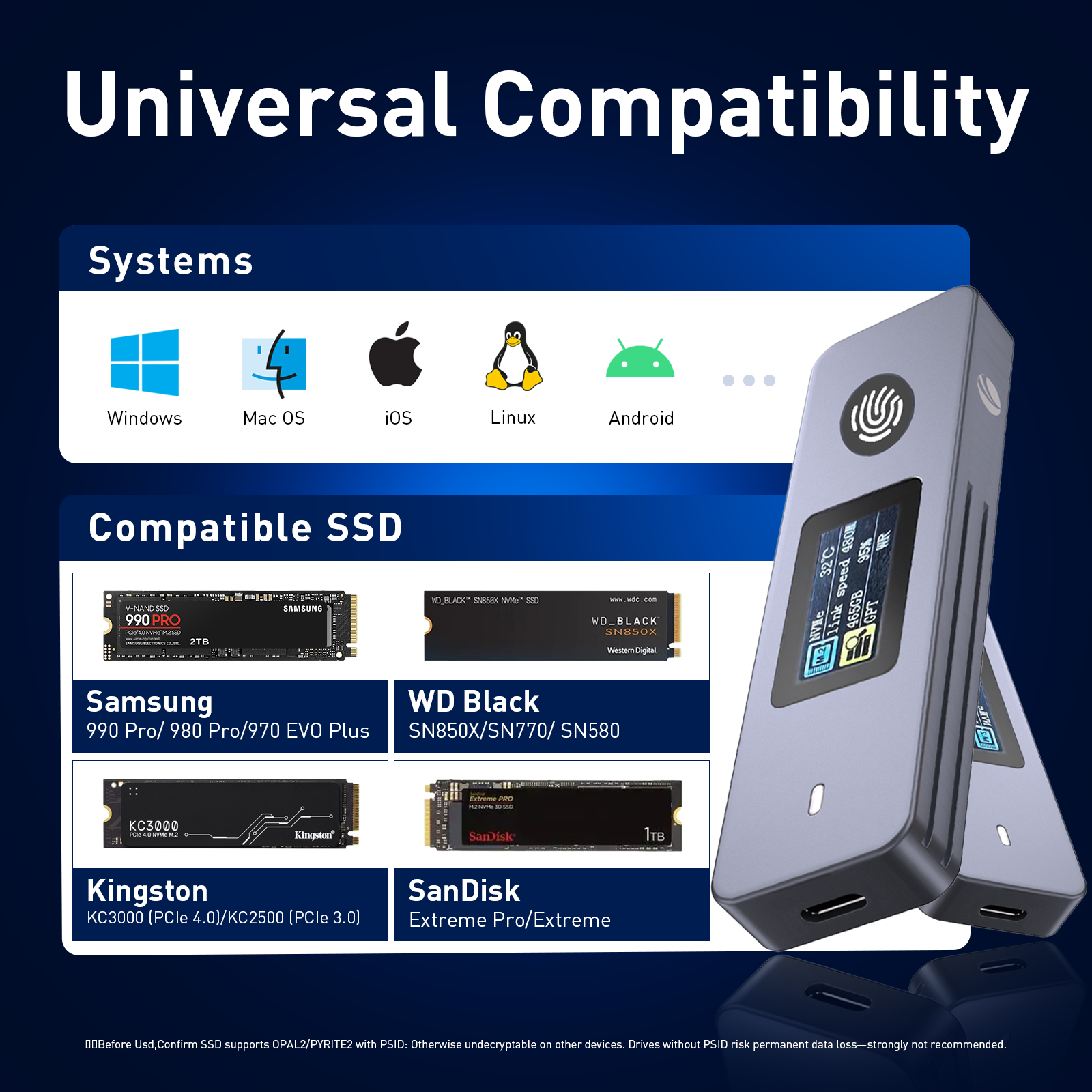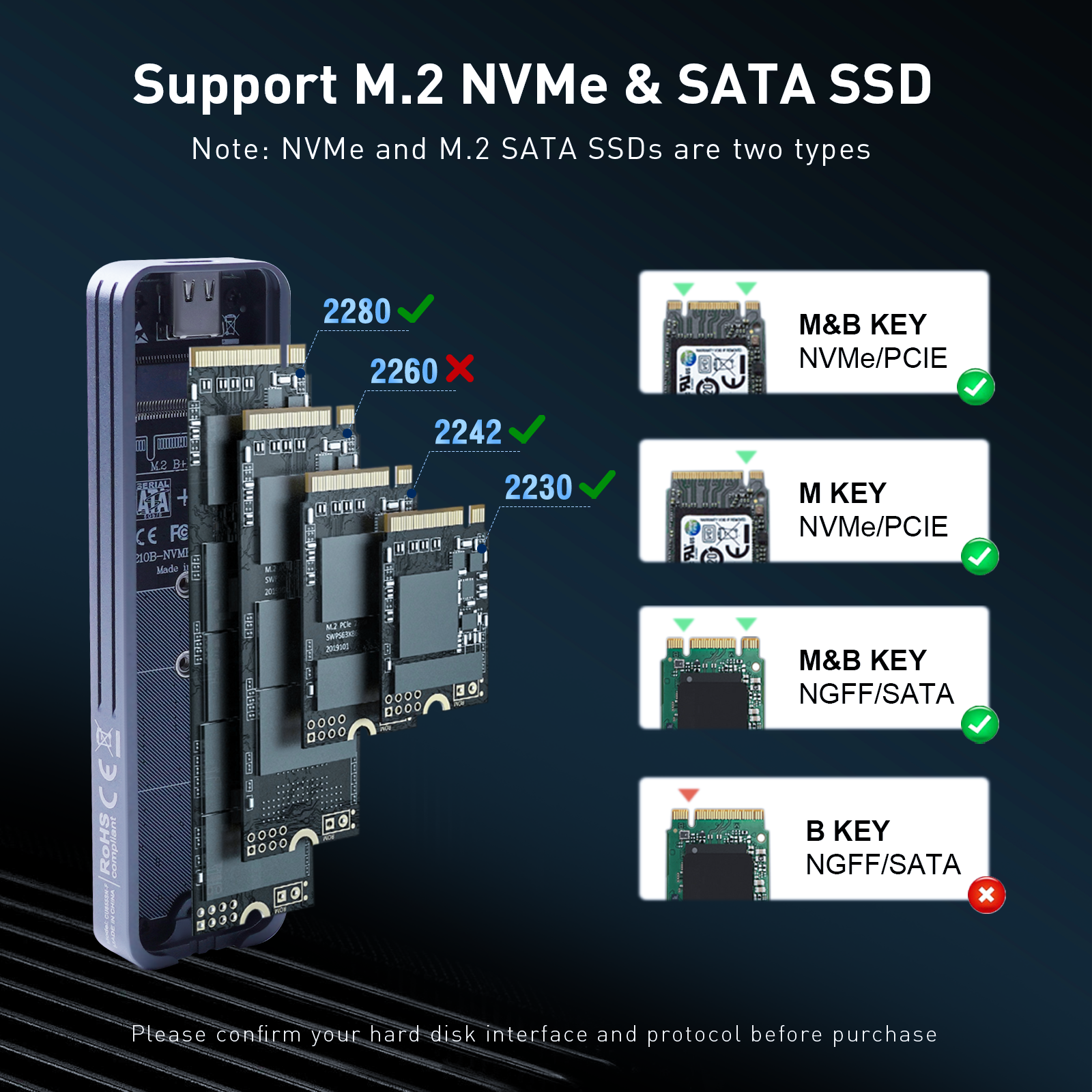 Compatible | M.2 NVMe M Key & (M+B) Key, 2230/2242/2280 SSD |