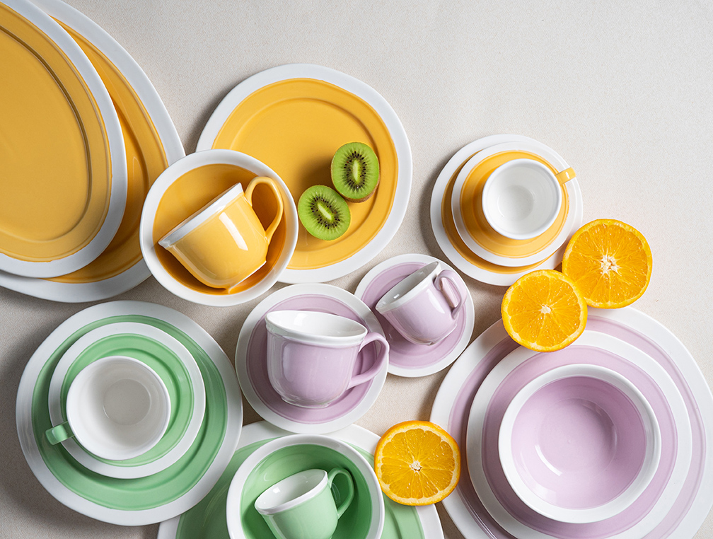 An array of warm and cool colours, the soft palettes of Firenze bring highlights to its white border rim while enhancing the curves of an organic shape.