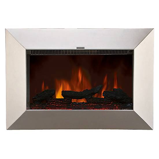 The featuring appliance is an electrical fireplace heater for mounting on wall. Equipped with a safety thermal cut-off device, the fireplace can produce log flamme effect in which the fire is adjustable.