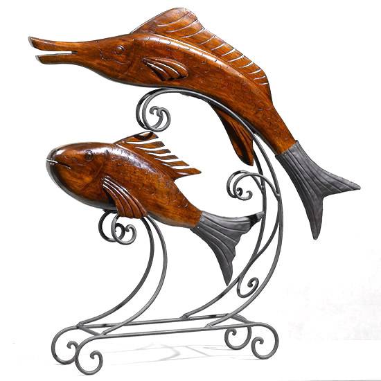 The dazzling decoration flaunts a vivid fish design, adding a sense of vitality to your home setting. The gracefully curved stand adorns the artsy fish decorations with a touch of elegance. Finely crafted with rubberwood and iron, this fish decoration makes a study and classy piece for both modern and traditional households.