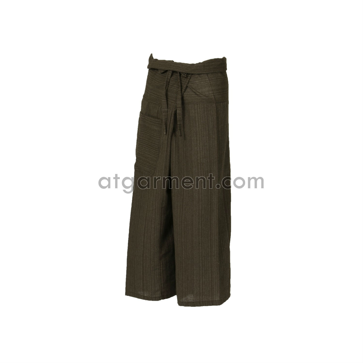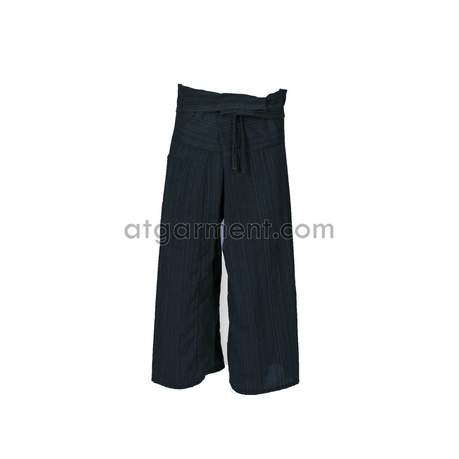 This pair of fisherman pants emulates modernist chic through its straight-cut silhouette, basking in a solid shade of modish finish. Its wrap and tie waist fastening ensures maximum comfort and accompanies all types of figures. A large pocket is further seen on the thigh area for carrying daily essentials like keys and wallet.