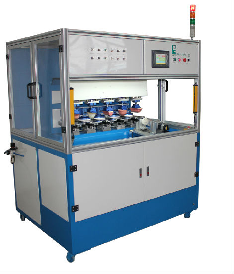 Plc & Touch Screen Control 5 Color Independent Pad Stroke 120mm Ink Cup 5 Stations High Speed Precision Servo Motor Driven Shuttle Angle Adjustable High Precision Servo Motor Driven Rotary Worktable. Optical Protection Guard Fulfill Ce Requirement Can Be Added With Fully Automatic Loading / Unloading System To Suit For Different Printing Requirement
