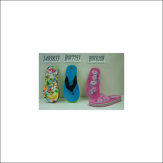 #1493833: a PU flip flop slipper with a colourful pattern.