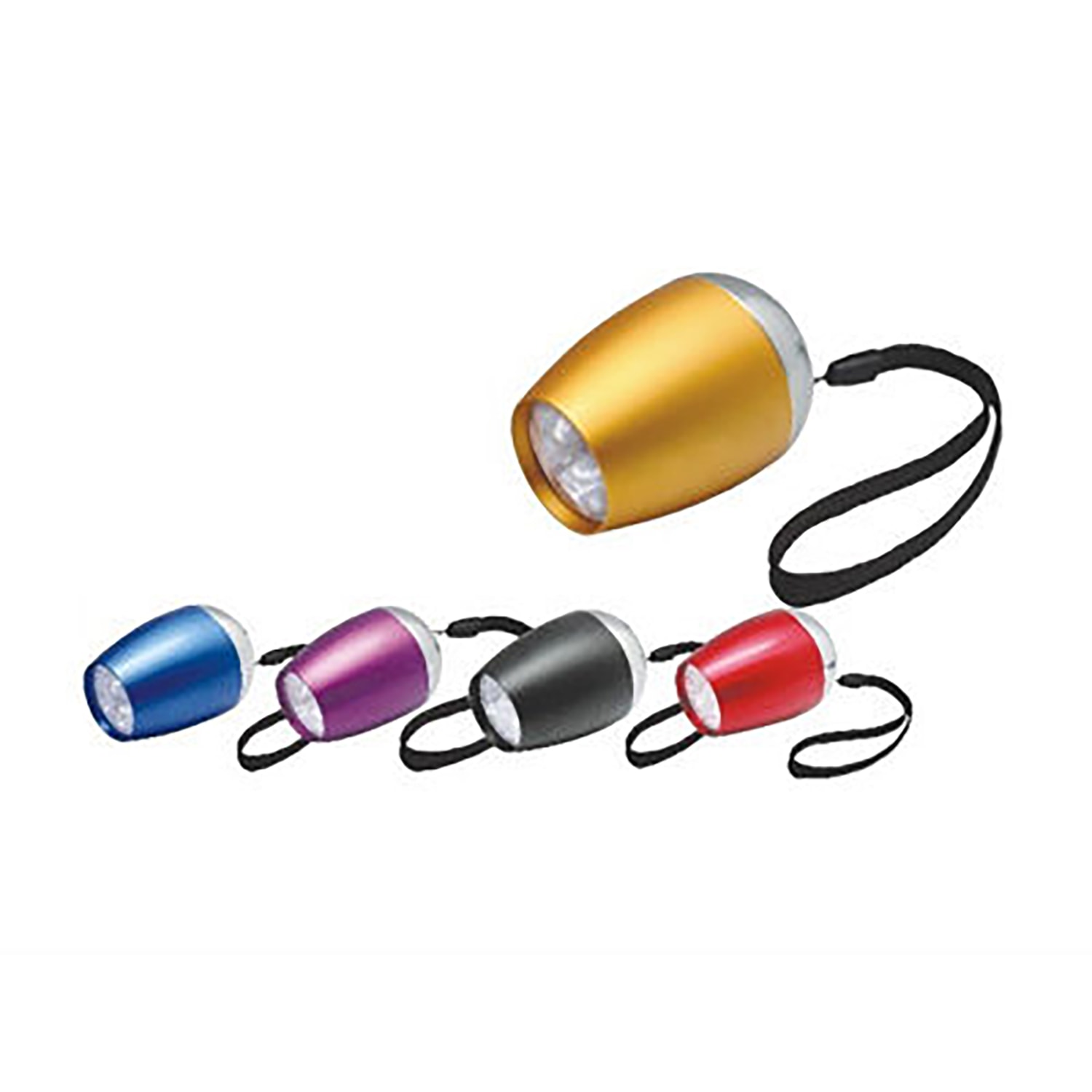 9 LED egg shaped aluminum flashlight includes the following features: 9 LEDs in high lumen; using 2 x CR2032 battery (included); lanyard.