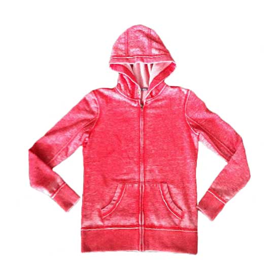 This is an eye-catching fleece hoodie in a bright color. It features long sleeves, two front pockets and a zipper closure. This fleece hoodie is made of 50% polyester, 50% cotton for a comfortable fit.