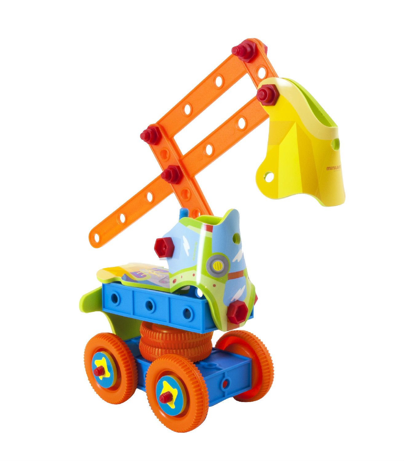 Pimp your ride at the Miniland workshop! Put together parts, nuts and bolts and build a race car, a crane or anything you can imagine. Combine the flexible parts with the rigid parts and develop your limitless creativity.