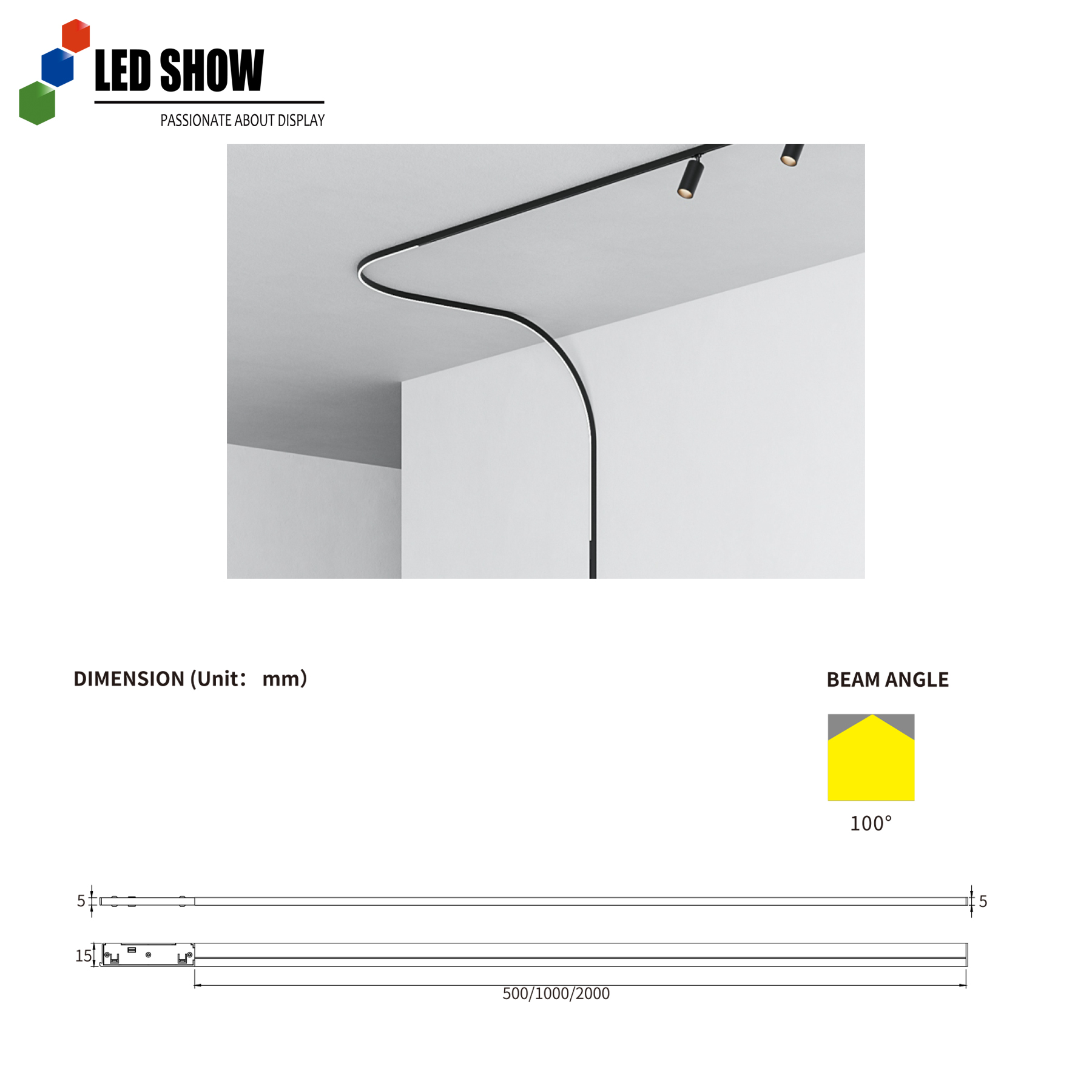 The ML-flexible Series Adjustable Track Light Strip is designed for modern commercial lighting applications, offering three standard length options—500mm, 1000mm, and 2000mm—to meet various spatial layout requirements. Featuring high color rendering LED light sources and a 100° wide beam angle, this series ensures even, soft illumination that enhances product display and visual comfort. The 48V safe low-voltage power supply system guarantees installation and operational safety, while compliance with international LVD and CBCE certifications makes it suitable for a wide range of commercial environments.