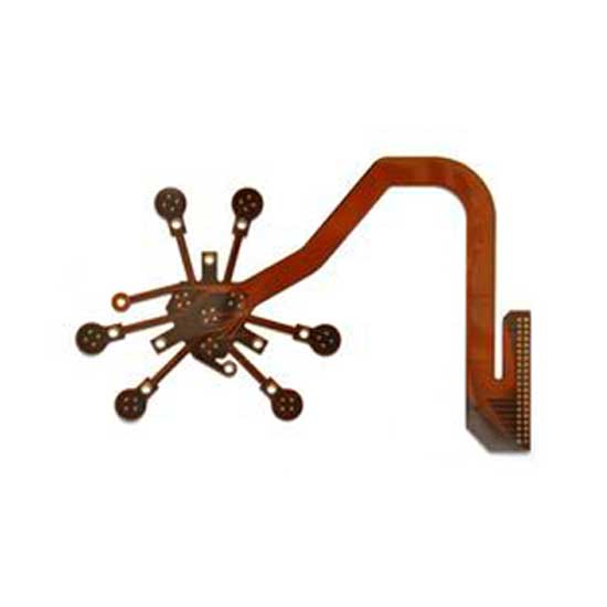 The displayed flexible PCB features a 2-layer design. It is durably made of polyimide for long time performance. This high quality flexible PCB is widely used in various electronics.