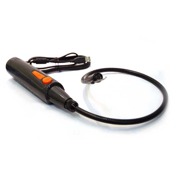 This flexible tube-shaped video borescope can be used to inspect behind walls, inside ceilings, in and around pipes and machinery, under vehicles, etc. The top-quality web camera provides a clear image of hard-to-read places. It is equipped with four high-power LEDs on the head for illumination.